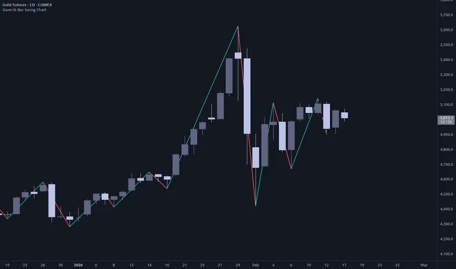 - Solid swing lines connecting confirmed turns (green=upswing, red=downswing)