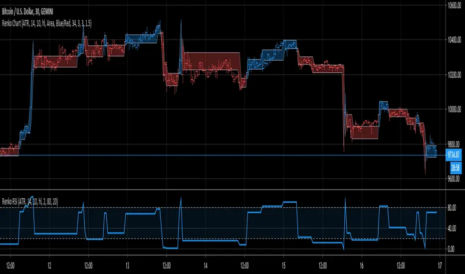 Renko charts ignore time and focus solely on price changes that meet a minimum requirement. Time is not a factor on Renko chart but as you can see with this script Renko RSI created on time chart.