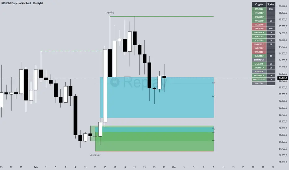 Entry Zones: Wait for price to retrace into the colored boxes (OB or FVG).