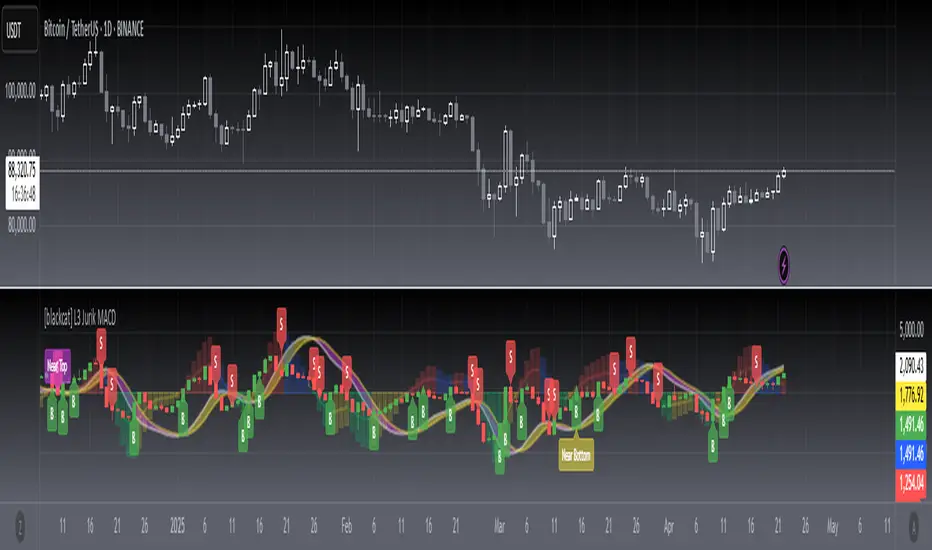 OVERVIEWThe L3 Jurik MACD indicator combines advanced moving average calculations with traditional MACD analysis to provide traders with comprehensive market insights. This sophisticated tool uses the Jurik Moving Average algorithm for more accurate trend identification compared to standard indicators. The script includes dynamic histogram coloring, customizable alerts, and visual price action analysis through EMA differences.