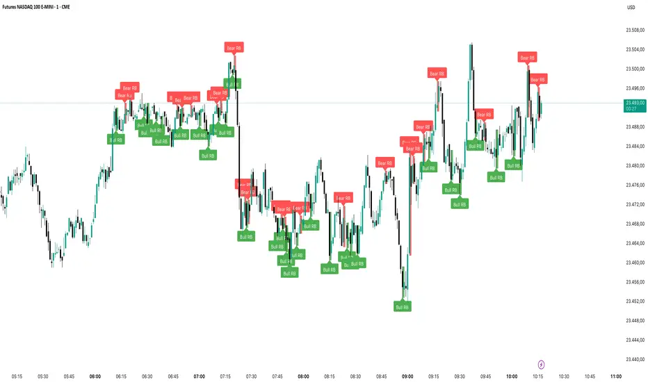 A bullish RB occurs when a down candle forms a lower low than both its neighbors. A bearish RB occurs when an up candle forms a higher high than both its neighbors.