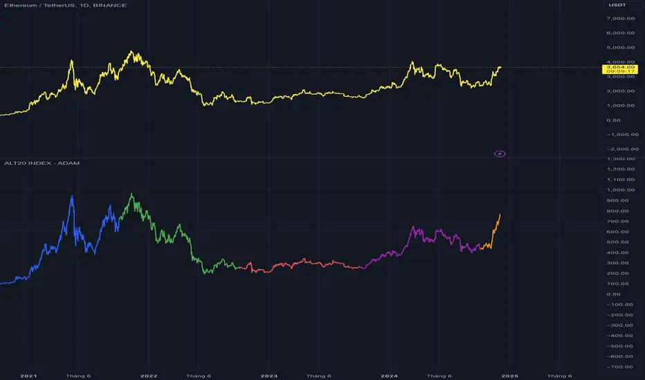 The "ALT20 INDEX" is a financial analysis tool designed to track the aggregate value of the top 20 cryptocurrencies by market capitalization and closing prices over specific periods. This indicator reflects changes in the combined value of these 20 ALTCOINs, providing an overview of trends in the cryptocurrency market.