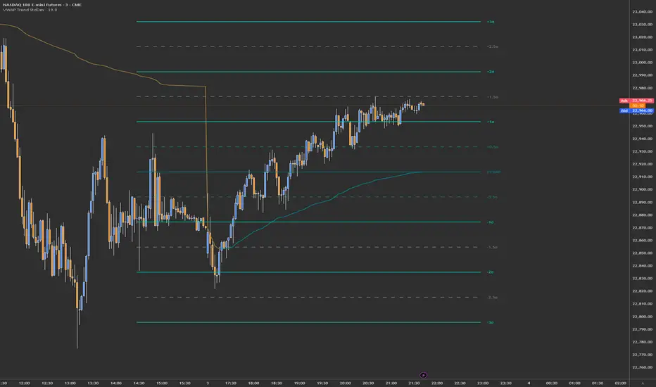 # VWAP Trend with Standard Deviation & MidlinesA clean, modern TradingView Pine Script indicator for visualizing VWAP (Volume Weighted Average Price) with customizable standard deviation bands and midlines. Designed for clarity, neutrality, and professional use.