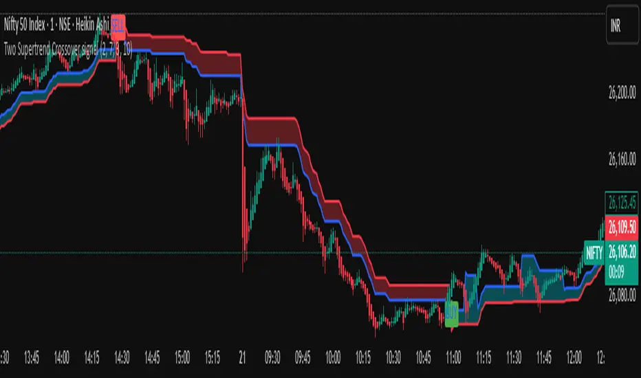 This indicator is designed to visualize trend shifts using two Supertrend lines and a crossover-based signal system.