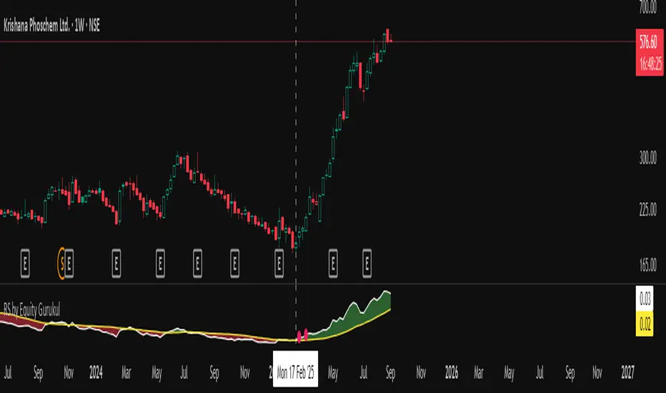 RS New High Detection: Marks points where RS makes a new high (within user-defined lookback) while price has not yet broken its own high → signaling potential early strength.