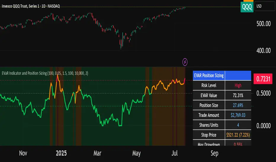 Position sizing is automatically calculated using an inverse relationship to EVAR, contracting during high-risk periods and expanding during low-risk conditions. This is a counter-cyclical approach that ensures consistent risk exposure across varying market regimes, especially when the market is hyped or overheated.