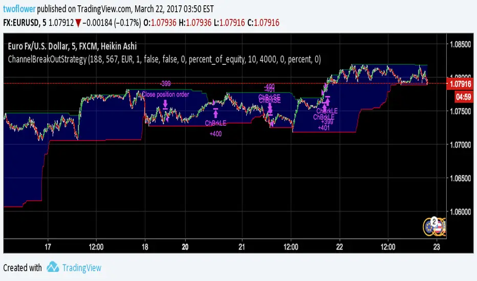 I am learning pine script at the moment and this is my first attempt at creating an expire time based strategy for binary options based on a simple example like the built-in Channel Break Out Strategy.