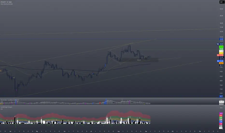 VSA context: Wide down bars (black) beyond ATR bands may suggest supply; wide up bars (white) may indicate demand.