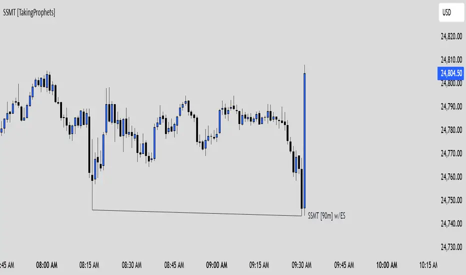 Informational overlay that detects intermarket SMT divergences between the chart symbol and a user-selected correlated symbol. It does not generate buy/sell signals and is not financial advice. Use it to structure analysis and alerts, not to automate trades.