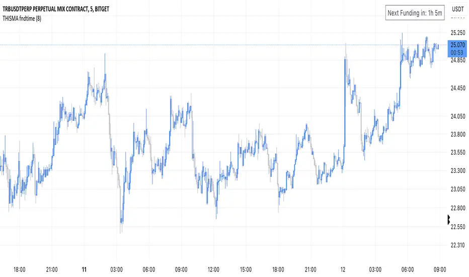 This indicator is crafted to assist traders in tracking the time left until the next funding event. It's tailored for platforms like Binance, Bitget, Bybit, and any other platforms that have regular 8-hour funding intervals synchronized with 16h UTC.