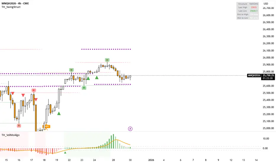 SwingStructure provides clean identification of swing highs and swing lows at multiple levels (minor, intermediate, major), plotting the market's structural rhythm. Understanding swing structure is fundamental to all price action trading methods.