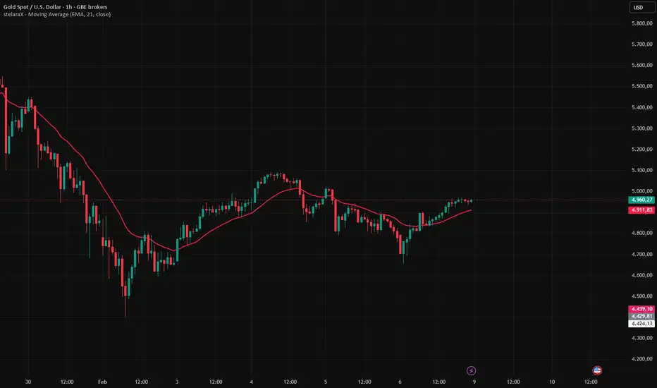 stelaraX – Moving Average is a flexible moving average indicator that allows switching between multiple MA calculation types while keeping a clean and minimal chart appearance. The indicator is designed for trend identification, dynamic support and resistance, and general market bias analysis.