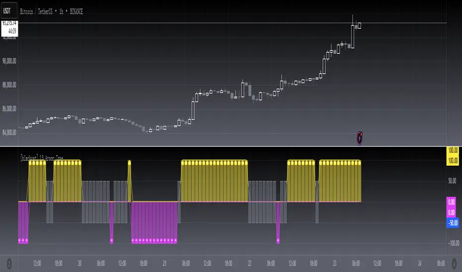 OVERVIEWThe [blackcat] L3 Aroon Zone indicator helps traders identify potential buy and sell opportunities using the Aroon oscillator. By calculating Aroon Up and Aroon Down values, this indicator determines zones of bullish and bearish strength, plotting them clearly on the chart. It also identifies periods of market choppiness, providing a comprehensive view of market conditions 📊💹.
