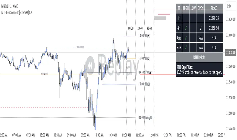 Break/Hit Confirmation: Instantly see when a key MTF high/low has been broken or when an opening price has been retraced to.