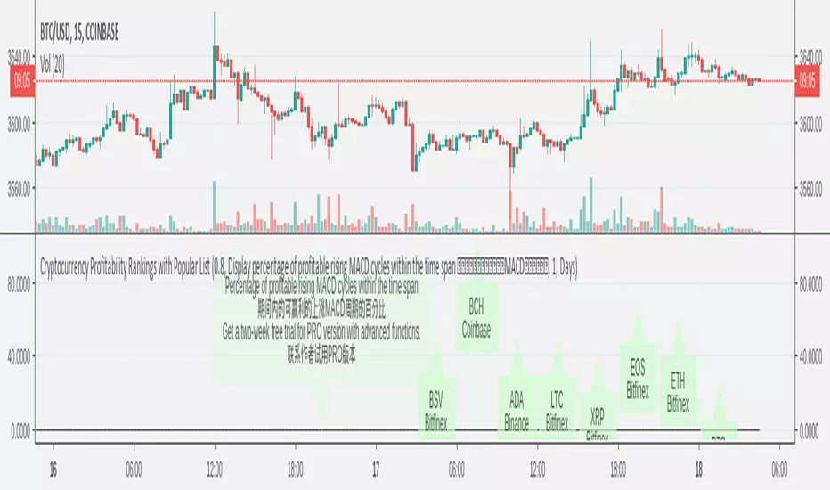 This indicator calculates and generate a ranking of profitability from a popular list of crypto currencies, based on MACD cycles within user-defined time span.