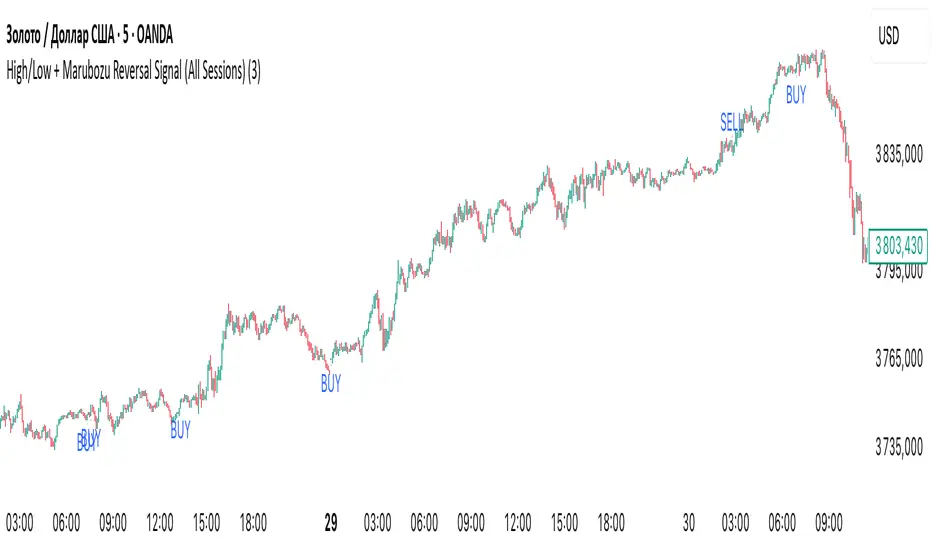 Marin Andrei High/Low + Marubozu Reversal Signal (All Sessions)