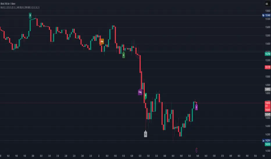 This indicator does not provide simple buy or sell signals. Instead, it acts as a powerful scanner, alerting you to moments of potential market manipulation, absorption, exhaustion, or stealth accumulation. Each signal is grounded in a statistical comparison of the current bar's price range and volume against a recent baseline, making it adaptive to any market and timeframe.