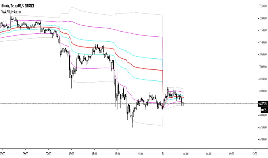 Anchored daily VWAP with adjustable standard deviation bands - intended for intraday scalping.