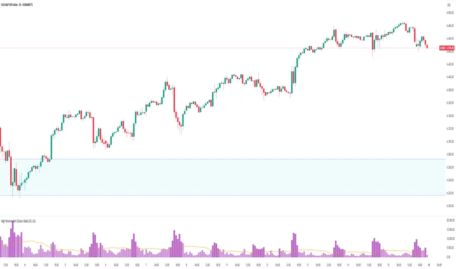 This indicator has the classic appearance of the volume indicator for tick volume. It notifies you according to your individual settings when there is increased volume on price.
