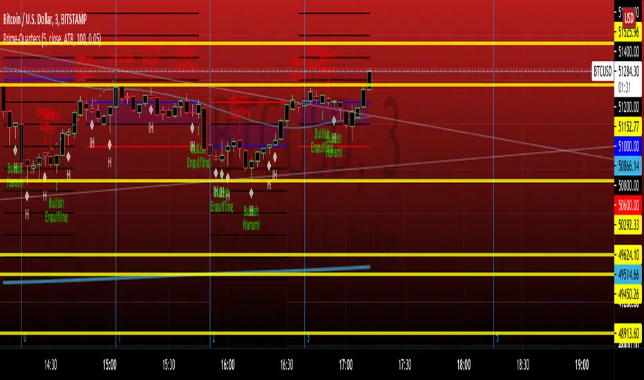 This script applies both the Quaters theory for easy analysis of market structure, as well as a 50 and 800 SMA to be used in conjunction with the 4 and 21 SMA found in Prime-Pulse, to pin point sniper entries. $auceCamp