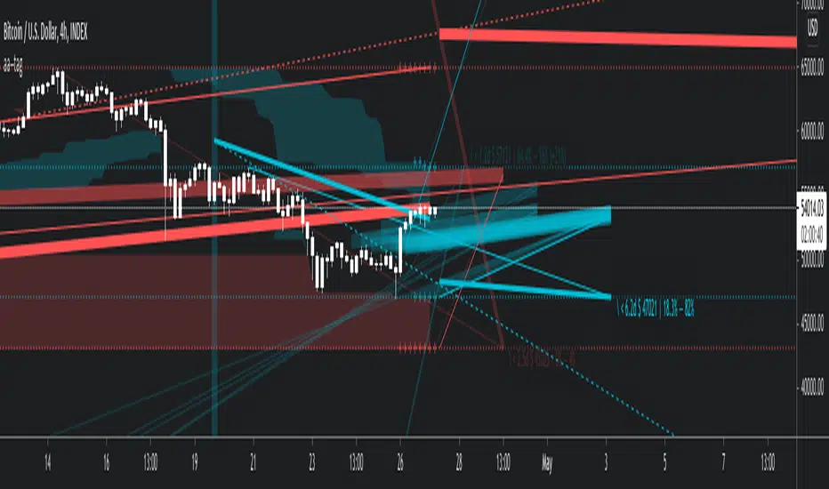 displays the fibonacci levels of .618 and .382 as support and resistance that decrease / increase based on the time left until --hi-lo inevitably moves