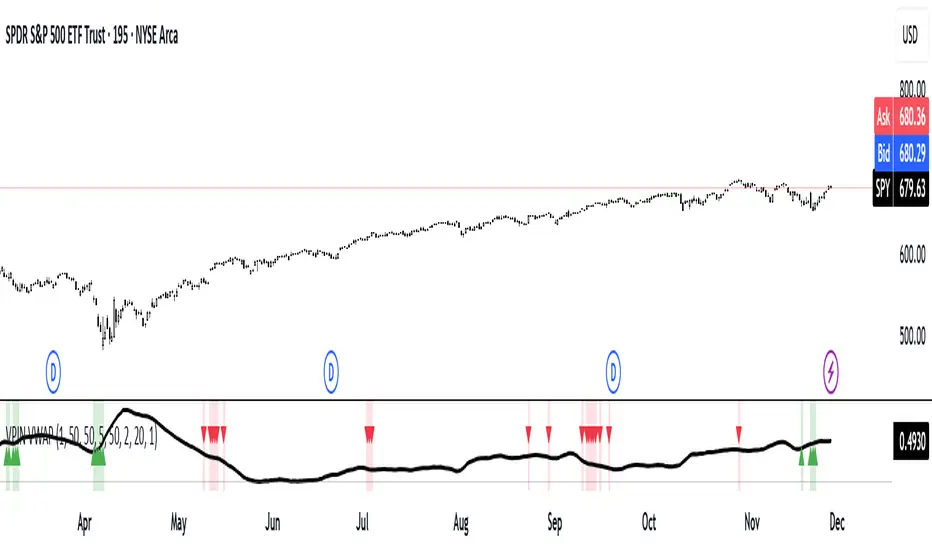 This is not a complete buy/sell signal, it ONLY tries to show signals from the movement of large players so no red signal does not mean there isn't systematic risk and no green signal does not mean there is systematic risk. Combine this with other indicators.