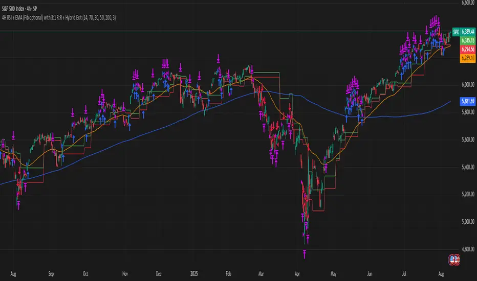 4H RSI + EMA (Fib optional) with 3:1 R:R + Hybrid Exit