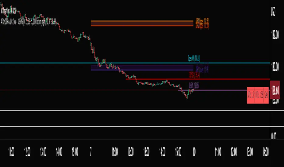 In the example chart you can see we are below weekly open which is bearish and you can also see where price reverses out of the upper adr zone. As well as how much of the atr we have moved on this day in time.