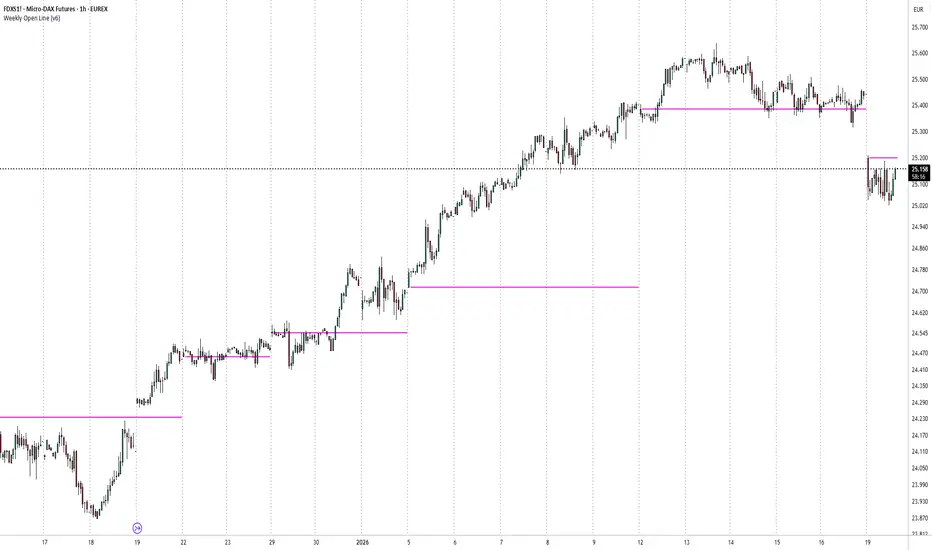 This script draws a horizontal line on the first price of the week, the weekly open.