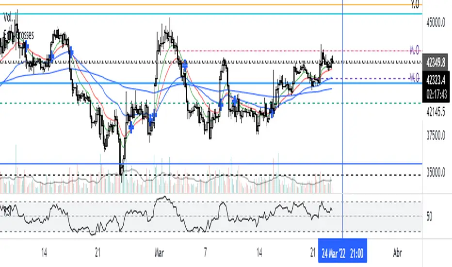 En un intervalo de velas diarias se obtienen las mejores señales, pero funciona bien para 4h y 15min tambien, recomiendo operar con los cruces de mayor probabilidad por encima y por debajo de la ema200, por debajo solo entradas en CORTO, y por encima solo entradas en Largo, luego de una señal se puede obtener un mejor Riesgo Beneficio si se espera a un posible test del ema 50, y se entra luego de un cierre de vela por por fuera de la ema 11, dandote un buen punto para el stop loss. Recomiendo utilizarlo basandose en zonas de soporte y resistencia de marcos temporales mas altos y teniendo en cuenta posibles divergencias en RSI al igual que su posicion en el momento de entrar al mercado.