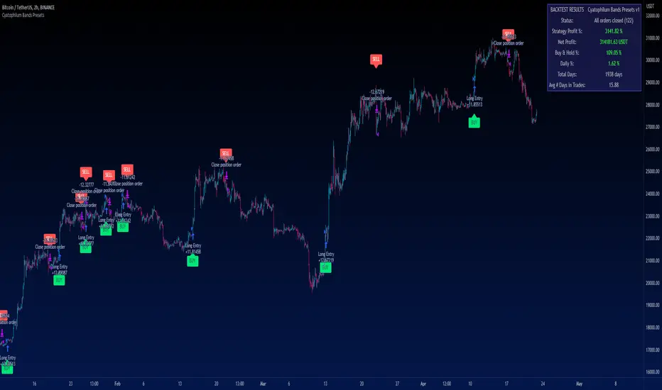 The indicator shows real time strategy results and has custom alerts for BUY and SELL signals which can be used to automate the strategy.