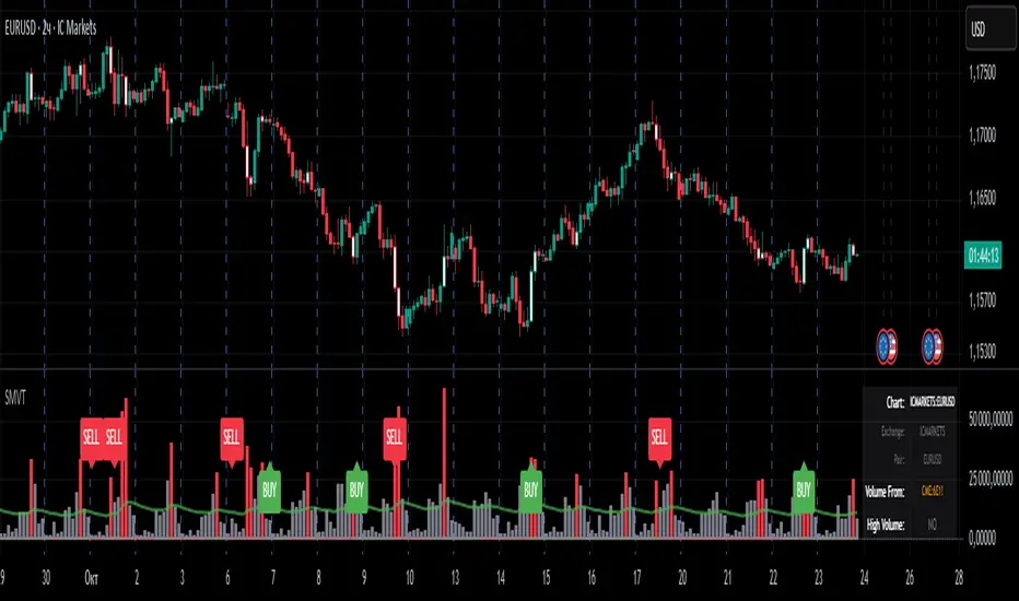 This ensures accurate automatic detection regardless of which data feed or exchange you use for charting. The information table in the top-right corner always displays which volume source is being used, providing complete transparency.