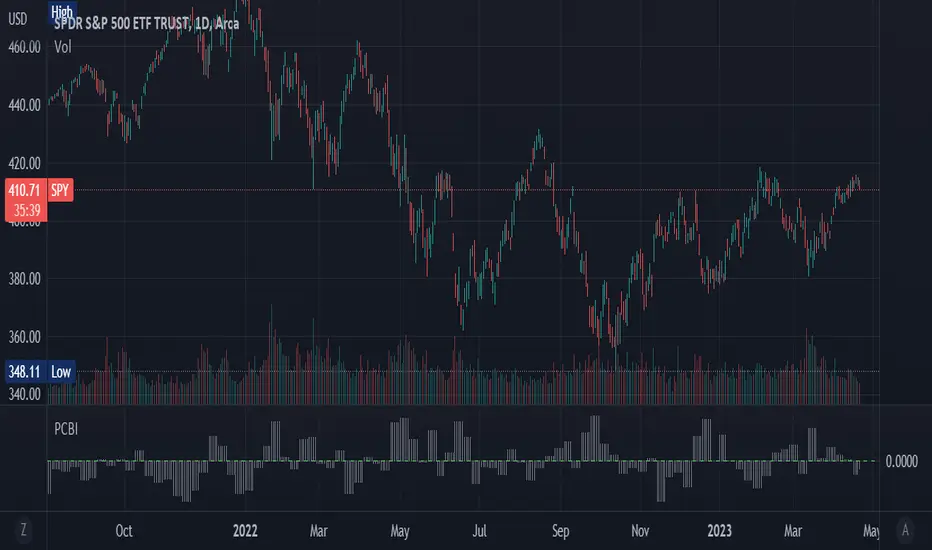 The Put-Call Bias Indicator provides a visual representation of the relative bias towards put options using CBOE data. This script calculates the Put/All ratio, displaying the difference as compared to an even 50% ratio as columns on the chart. A positive value indicates a higher proportion of puts being bought compared to the total number of options contracts.