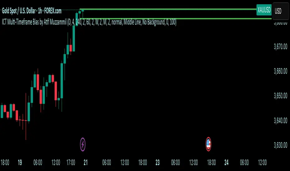 This indicator implements multi TF bias concepts across multiple timeframes simultaneously. It identifies and displays bias levels.