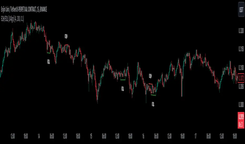 "Equal Highs/Lows [UAlgo]" is provided for informational and educational purposes only. Trading involves risks, and users should exercise caution and perform their own analysis before making any trading decisions based on this indicator. The creator of the indicator, UAlgo, does not guarantee the accuracy or reliability of the indicator, and usage of this indicator is at the user's own risk.