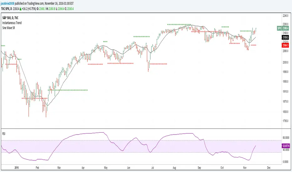 Support and Resistance plotted to match John Ehler's Hilbert Sine Wave