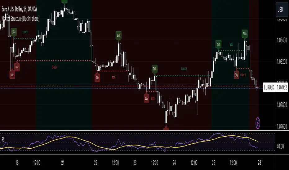 Đầu tiên phải xác định được đỉnh đáy, vẽ được cấu trúc thị trường. Từ đó thì mới xác định được BOS và ChoCh.
