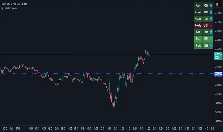 This indicator displays a real-time performance table for the "Big 7" NASDAQ stocks: