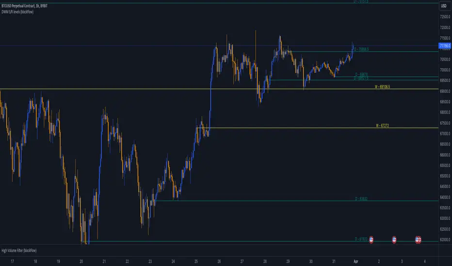 * Minimizing Chart Clutter with Relevant Levels: To keep the chart focused and useful, the script includes features to hide levels that are no longer relevant or are significantly far from the current price. This decluttering is based on user-defined settings that allow traders to focus on the most actionable levels—those that have not been breached and are in close proximity to the current price.