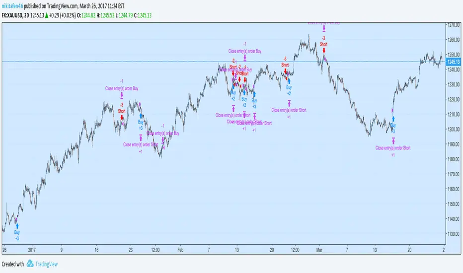 Very similar setup to previous code, but now I added strategy.close orders - the previous ones didn't have them.