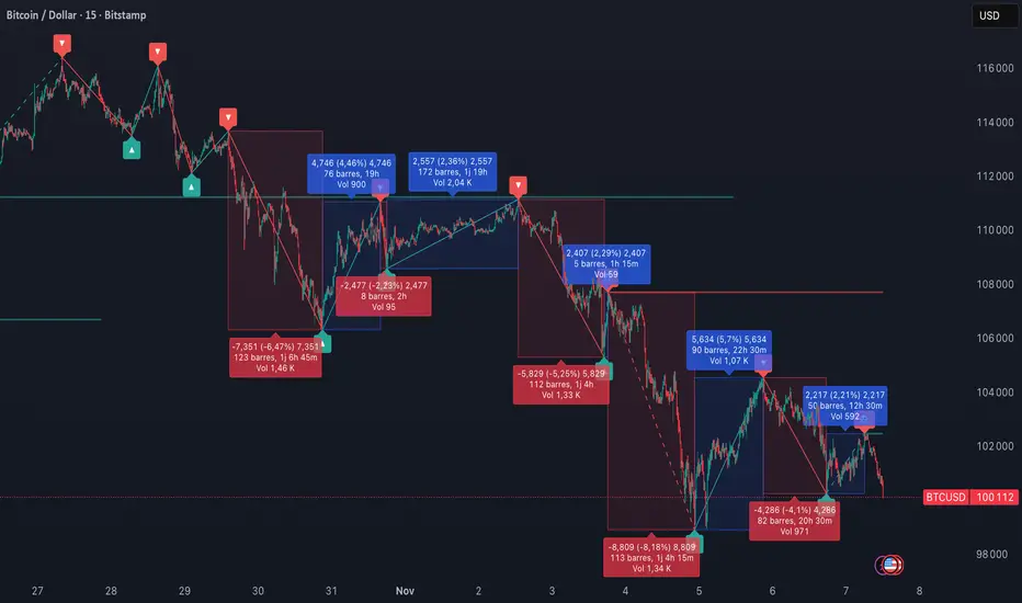 An advanced TradingView indicator that combines LuxAlgo's pivot point detection algorithm with automatic measurement calculations between consecutive pivots.