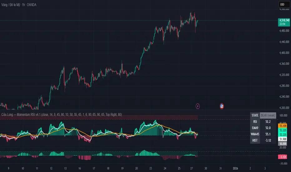 Chỉ báo động lượng rsi nâng cấp gồm histo, ema hỗ trợ
