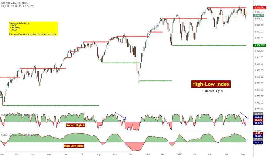 The High-Low Index is a breadth indicator based on Record High Percent, which is based on new 52-week highs and new 52-week lows.