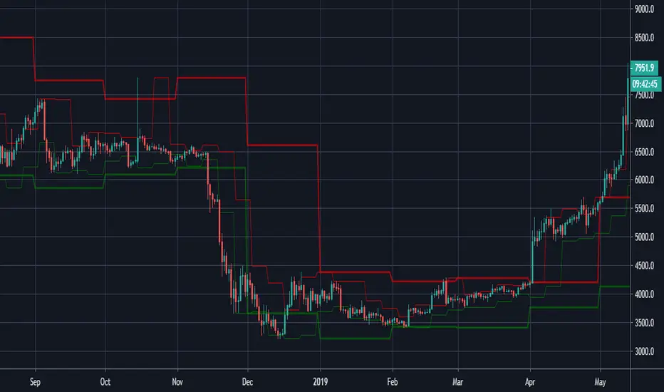 A simple line set indicator displaying the highs and lows of the previous selected timeframe upon a lower timeframe chart (2 line sets available).
