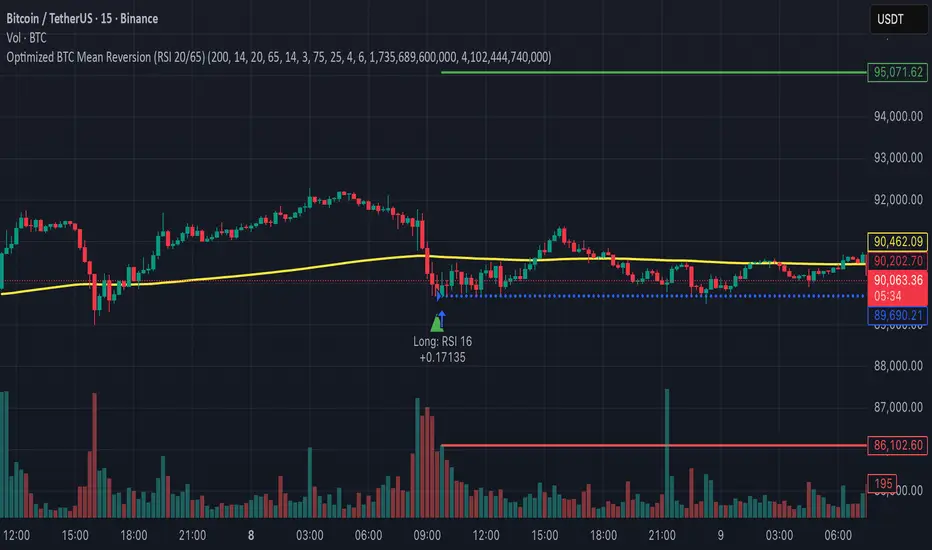 Optimized BTC Mean Reversion (RSI 20/65) is a rule-based trading strategy designed to capture mean-reversion moves in strong market structures, primarily optimized for Bitcoin, but adaptable to other liquid cryptocurrencies.