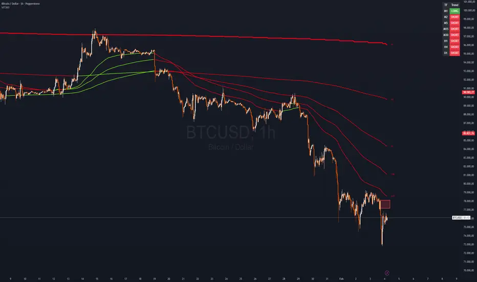MT360 is a clean and powerful multi-timeframe indicator based on the EMA 360, designed to give you an instant overview of market direction across multiple timeframes.