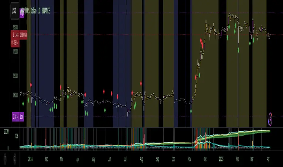 This is not a signal engine—it’s a narrative filter designed to slot cleanly into a multi-layered workflow of visual structure and informed execution. Use it to identify bias and phase. Then deploy trade triggers from tools like SUPeR TReND 2.718, or the liquidity flows shown the The Silver Lining or the AltSeasonality - MTF indicators, for example. The candle colors tell you who’s in control—the other tools tell you when to act.