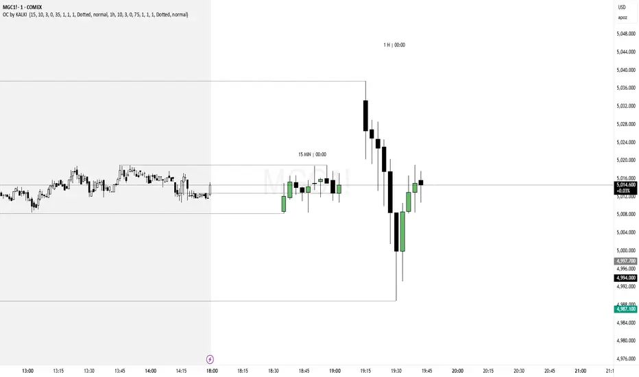 Overlay Candles by KALKI is a multi-timeframe visualization tool designed to project higher-timeframe price action directly onto your execution chart with precision and clarity. It overlays fully customizable HTF candles — complete with bodies, wicks, borders, and live open/high/low markers — so you can track structural context without switching charts. The indicator supports dual timeframe stacking, adjustable candle counts, scalable body widths, gap spacing, and forward offset positioning to keep your workspace clean and readable. Dynamic extreme markers map the highest highs and lowest lows back to their originating price bars, while live session open lines and countdown timers keep you synced with active HTF candles in real time. Built for traders who rely on liquidity, displacement, and price delivery rather than lagging indicators, this tool turns your chart into a structured decision map — blending higher-timeframe bias with lower-timeframe execution in one unified overlay.