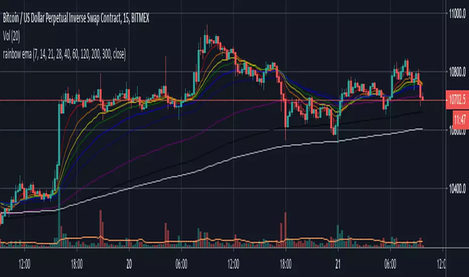 You can use several ema lines by adding one indicator only, and I put 7,14,21,28,40,60,120,200,300 as a threshold which I frequently use.