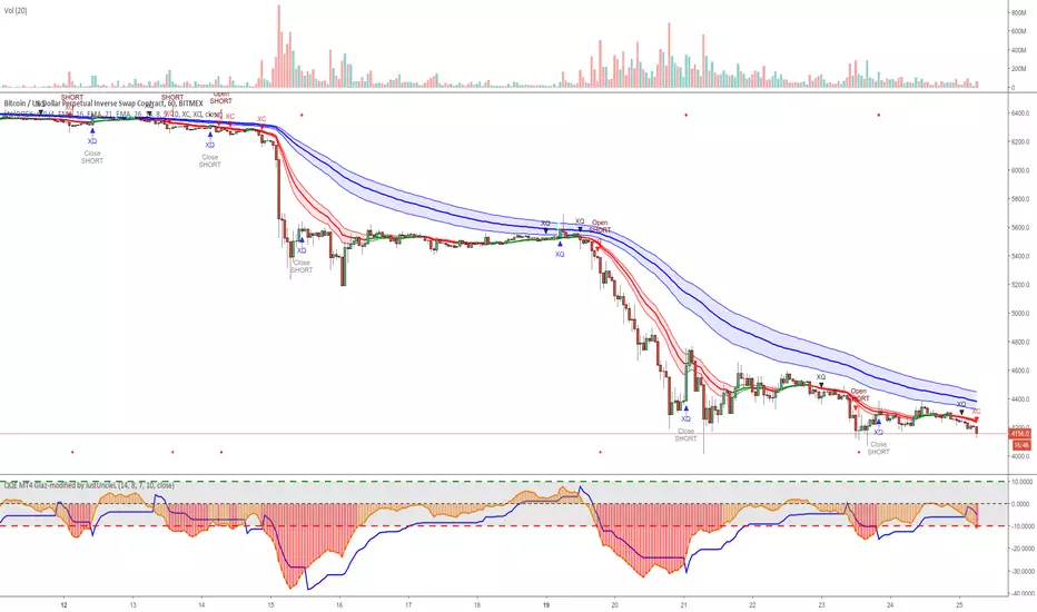 This is a major upgrade of my original QQE indicator Tool, this version is directed at Forex and Crypto Margin trading. This version can also be used with AutoView/ProfitView Chrome add-on in a semi-automatic (turn on only when conditions are favorable) or automatic way, with Signal to Signal or Signal to Close trading.